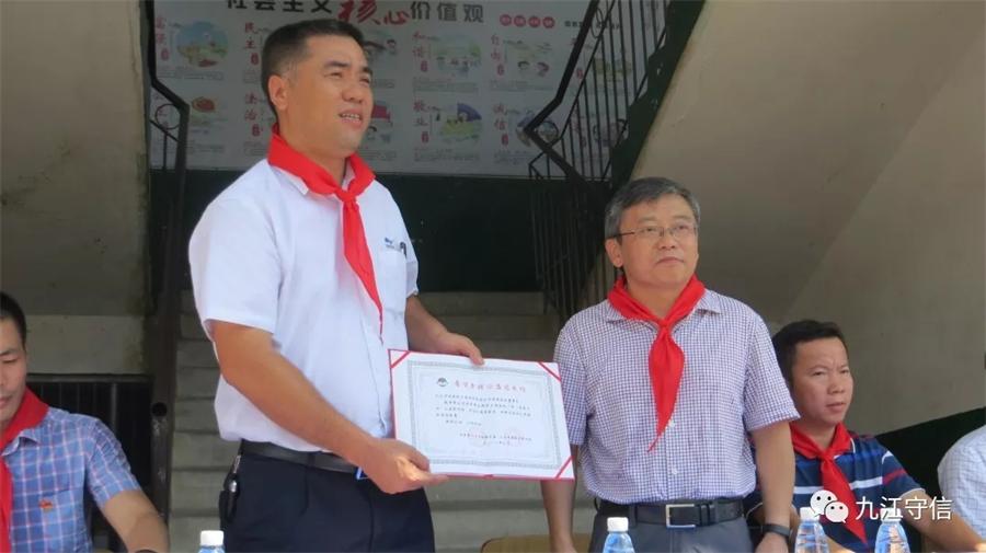 2018年9月20日上午,由共青團(tuán)柴桑區(qū)委、區(qū)圖書(shū)館和守信企業(yè)共同籌建的“希望鄉(xiāng)村”公益圖書(shū)館在涌泉鄉(xiāng)涌泉村小學(xué)舉行開(kāi)館暨館長(zhǎng)聘任儀式。區(qū)政協(xié)主席袁汝明,團(tuán)區(qū)委書(shū)記陳石寶,區(qū)圖書(shū)館館長(zhǎng)吳述仁,涌泉鄉(xiāng)黨委書(shū)記張穎等單位領(lǐng)導(dǎo)和涌泉村小全體師生以及公司董事長(zhǎng)陳尚法、公司青年志愿者參加了本次活動(dòng)。
