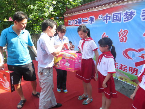 暢談會(huì)結(jié)束后,公司團(tuán)支部又緊鑼密鼓的開(kāi)始策劃助夢(mèng)活動(dòng)。6月24日在九江縣城門(mén)鄉(xiāng)中心小學(xué)舉辦了暢談活動(dòng)續(xù)篇-“愛(ài)心助夢(mèng)”儀式。青年志愿者和愛(ài)心企業(yè)家依次為留守兒童贈(zèng)送愛(ài)心,當(dāng)留守兒童收到期盼已久的禮物時(shí),臉上洋溢出快樂(lè)的笑容。