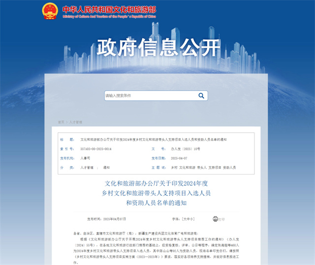 2024年度鄉(xiāng)村文化和旅游帶頭人支持項目入選人員名單